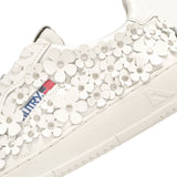 Step out in style with the Autry Medalist Low “Patent Flower White”, a premium women’s sneaker crafted in glossy white patent leather, adorned with delicate hand-cut floral appliqués for an elegant, artistic touch. The classic low-top silhouette combines vintage ’80s tennis inspiration with modern flair: perforated toe ventilation, padded collar, flat cotton laces, and a cushioned rubber sole (2.5-3.5 cm) for all-day comfort. Perfect for those who want a bold statement without sacrificing comfort or heritage style.
