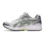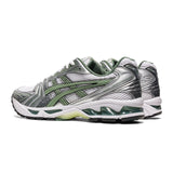 La ASICS GEL-Kayano 14 White / Slate Grey marque le retour d’une silhouette iconique du running des années 2000, aujourd’hui devenue une référence du streetwear technique. Ce modèle unisexe combine une base blanche, des détails argentés métalliques et des touches de vert, pour un rendu à la fois sportif, premium et très actuel.