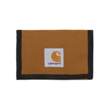 Le portefeuille 'Alec' de Carhartt est conçu en toile Duck, un tissu résistant composé de polyester recyclé. Déperlant, il dispose d'un compartiment à billets zippé, six fentes pour cartes ainsi qu'un porte-monnaie en Velcro® derrière lesquels se trouve des compartiments cachés. Une étiquette carrée cousue sur le devant complète le design.