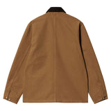 La veste 'Michigan Coat' de chez Carhartt est confectionné dans une toile robuste Dearborn de 12 oz (340 g) qui s'assouplira progressivement avec le temps. Les poches plaquées à l'avant ainsi que le col en velours côtelé offrent du relief tandis que les coutures en triple point assurent la durabilité du vêtement. L'étiquette carrée cousue à l'avant complète le design.