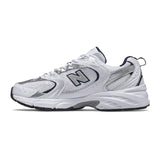 La New Balance R530SG est un best-seller incontournable, directement inspiré des modèles running des années 2000. Appréciée pour son design technique et son confort immédiat, cette version unisexe associe une base blanche à des détails argentés et des touches de bleu Natural Indigo, offrant une silhouette dynamique et facile à porter au quotidien.
